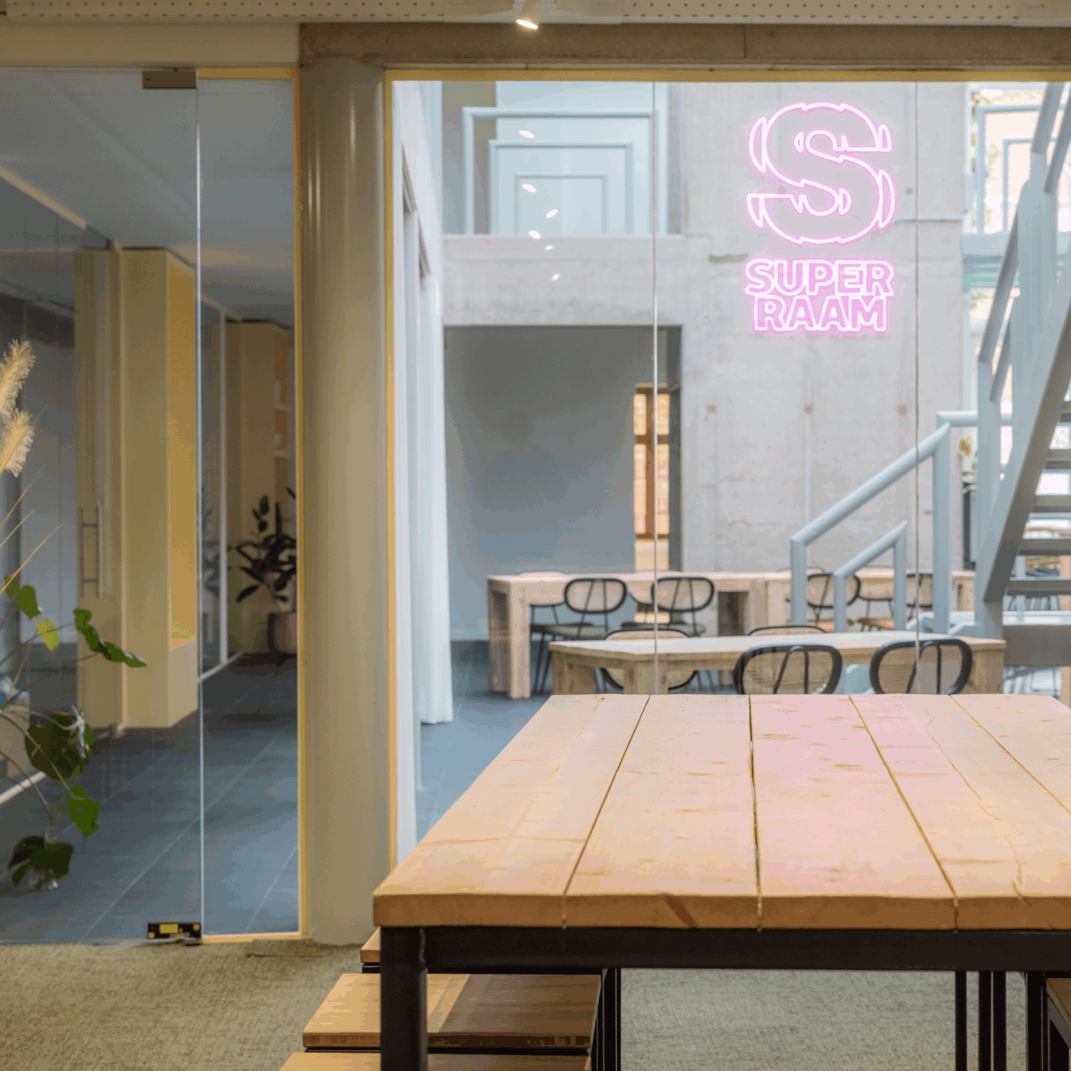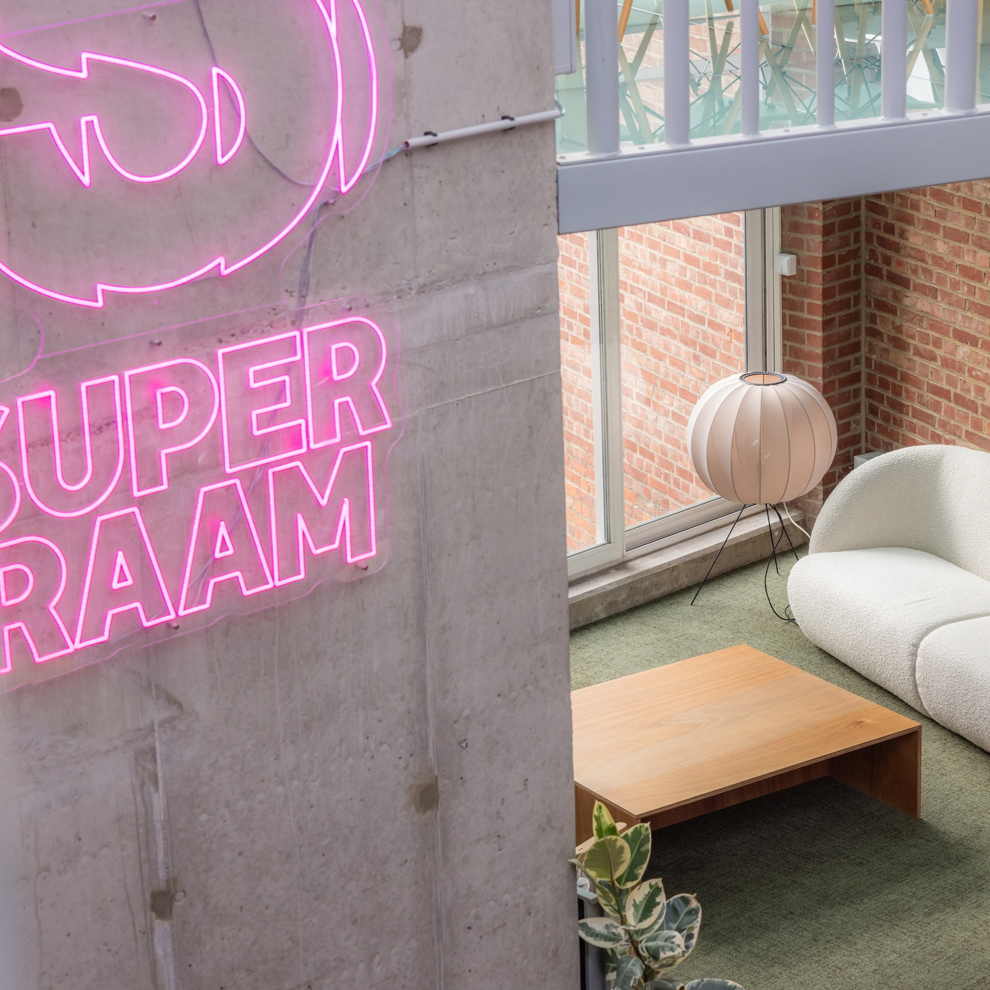 SuperRaam is een plek waar energieke mensen en frisse ideeën samenkomen. Je werkt, vergadert of organiseert je event in hartje Hasselt — tussen leuke winkels, horeca en stadsvibes.